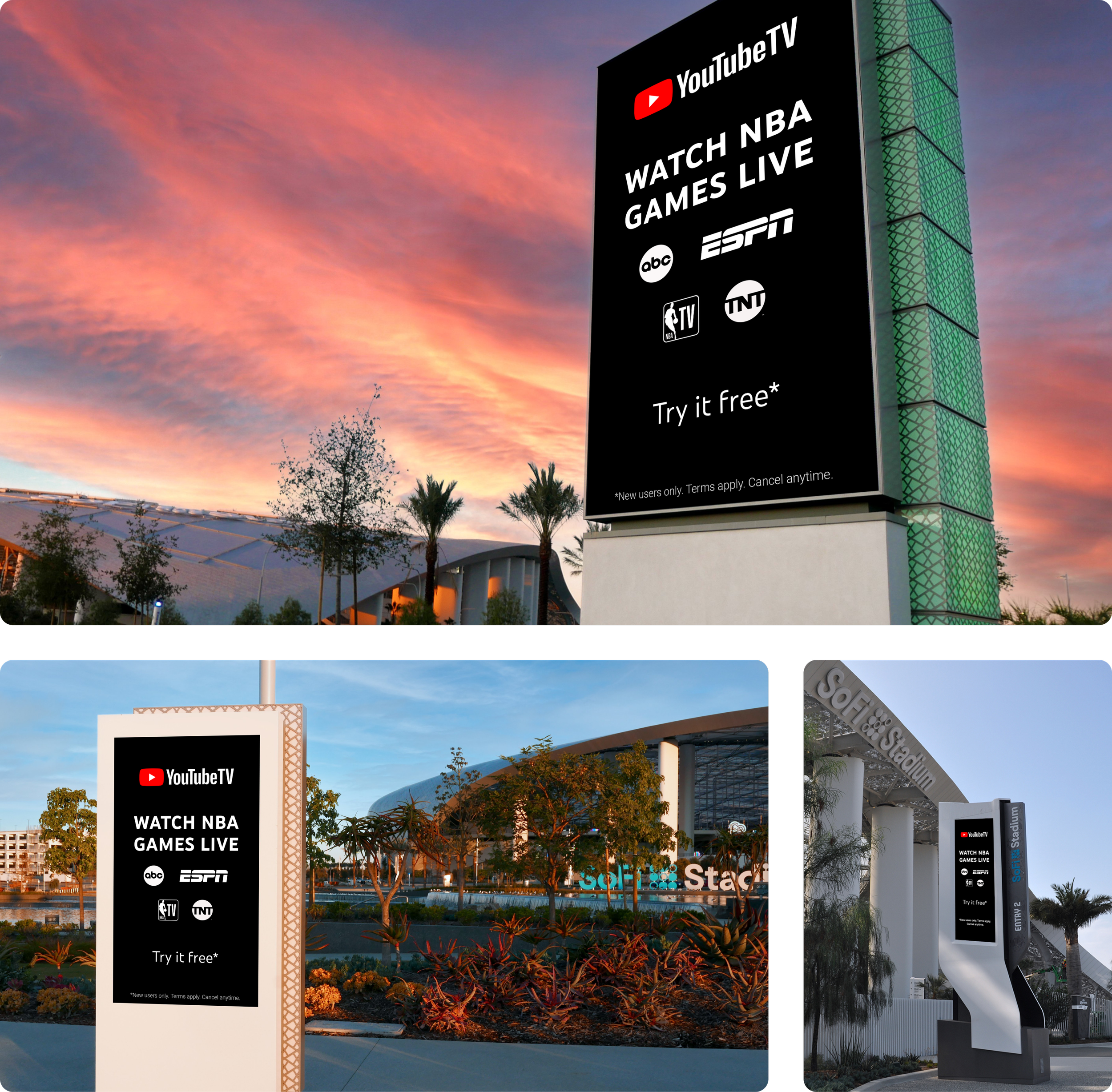 I was privileged to spearhead the design of NBA banners for YouTube TV at Sofi Stadium in Los Angeles. I worked closely with Art Director, Brad Ackerman to create minimal designs that highlight messaging while being able to scale seamlessly. Witnessing my designs come to life in the heart of LA was an amazing experience.